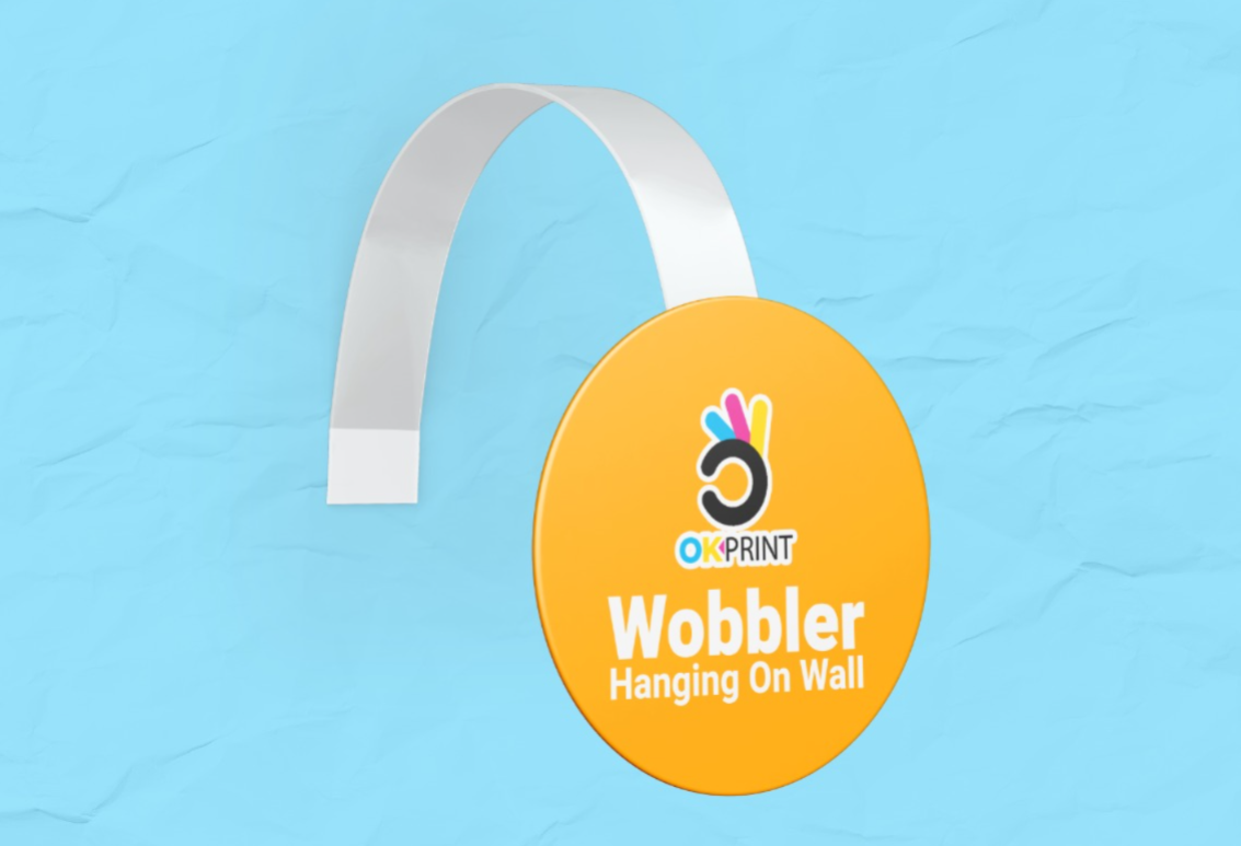 Wobbler promosi terbuat dari bahan Art Carton 260/310gsm, dan gantungannya dari mika tebal 0,2 cm